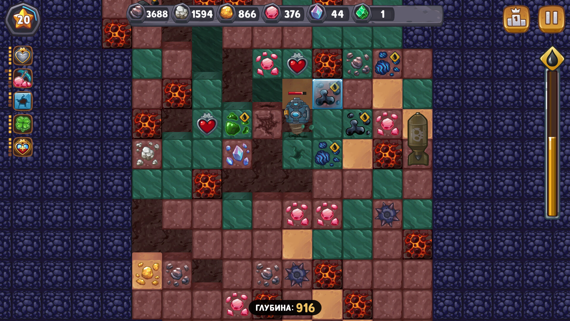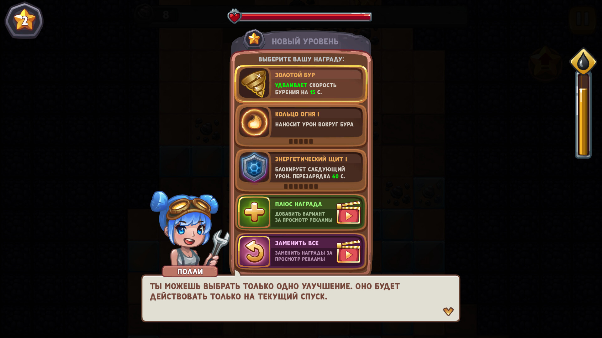 2D аркадный рогалик про копание. Ломайте блоки в поисках сокровищ. Прокачивайте свой бур и умения! Выполняйте задания. Соревнуйтесь с друзьями и станьте лучшим!