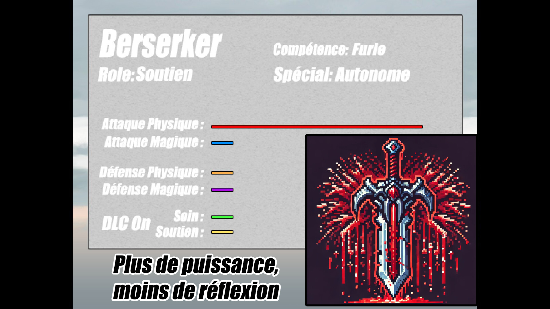 • Berserker: A brutal, self-sufficient class designed to deal massive physical damage without relying on allies.