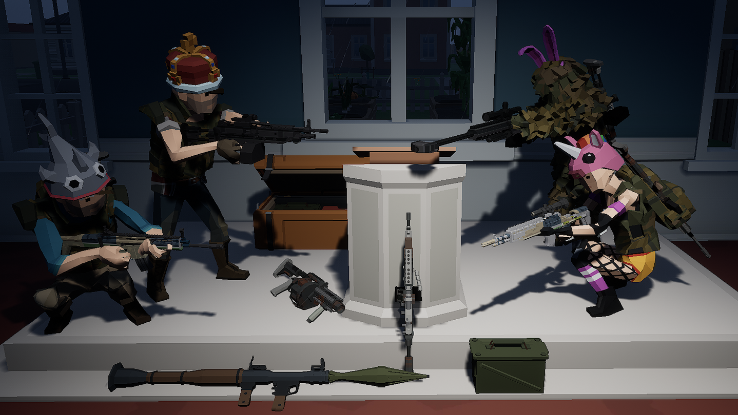 Jump, Land, Fight! Immerse yourself in the world of Battle Royale and Endless Deathmatch on diverse PolyRoyale maps. Whether you play solo, as a duo, or in a squad, you have a plethora of weapons at your disposal. However, in the end, only one can emerge as the victor! (Mini-Game)