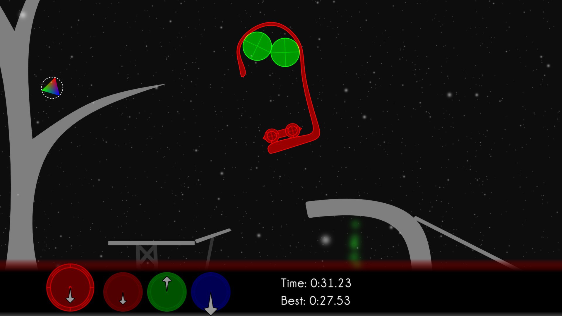 • Colour-based physics: Change your colour and manipulate each level's gravity to solve every puzzle. Primary colours have different gravities applied to them, and when combined form a secondary colour that takes the vector sum of that gravity.