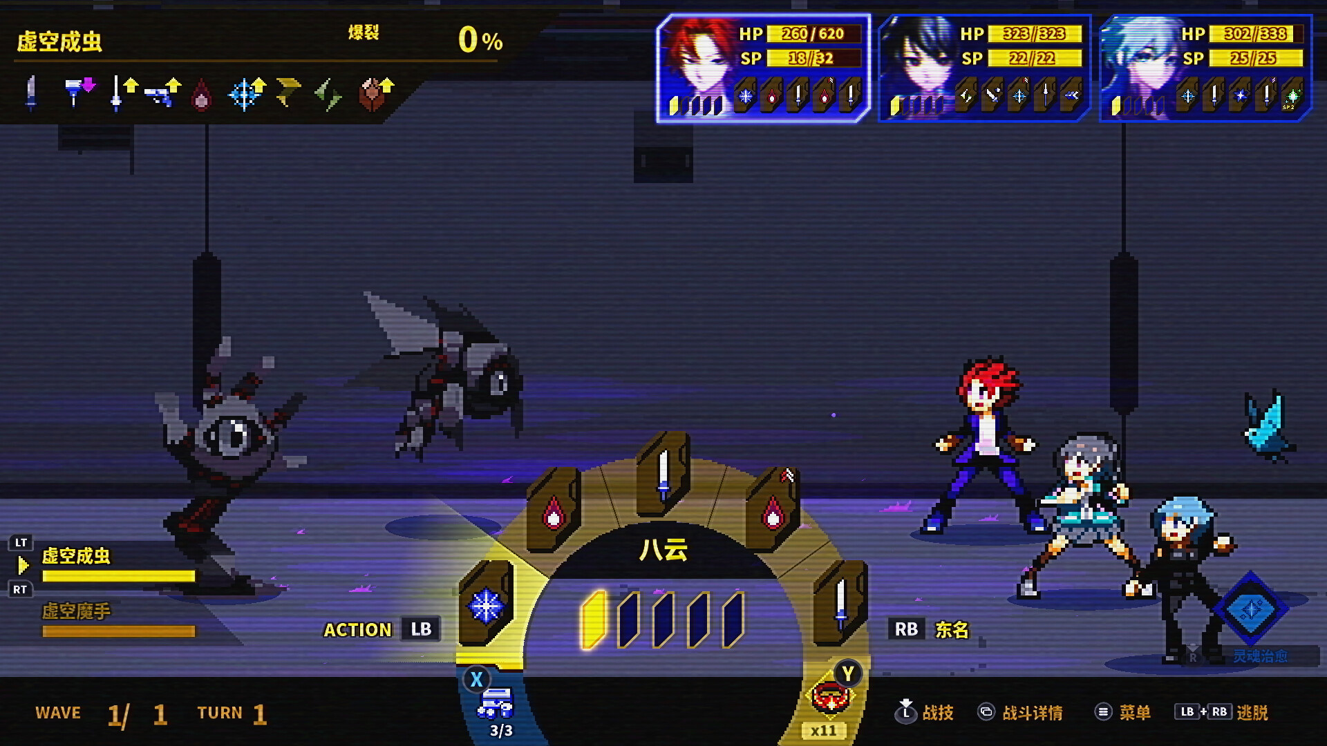 ““SOULVARS uses a retro Japanese role-playing game look that suits the theme and the gameplay well. It's classic pixel art, with a focus on interesting designs for the player-controlled characters and the many cool moves they can execute. It is nice to watch the action unfold but the variety of locations and enemies is limited. More energy has been used to create bosses and their unique moves. The interface is easy to navigate and offers plenty of information for players to process.””