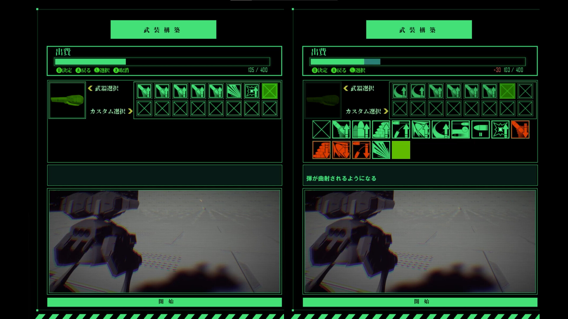 ''Custom Bullet" is an action game in which players customize a high-speed machine called a "grit slider" and "left and right weapons" to fight 1 vs. 1.