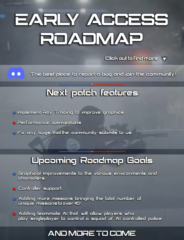 • Adding teammate AI that will allow players who play singleplayer to control a squad of AI controlled police.