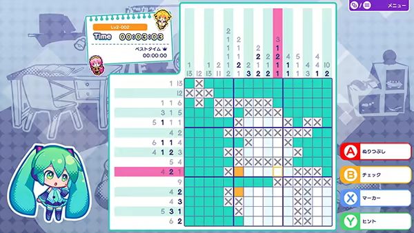 Nya pussel i storlekarna 5x5, 10x10, 15x15 och 20x20 och uppdaterade pussel från smartphone-appen Hatsune Miku Logic Paint - MIKULOGI