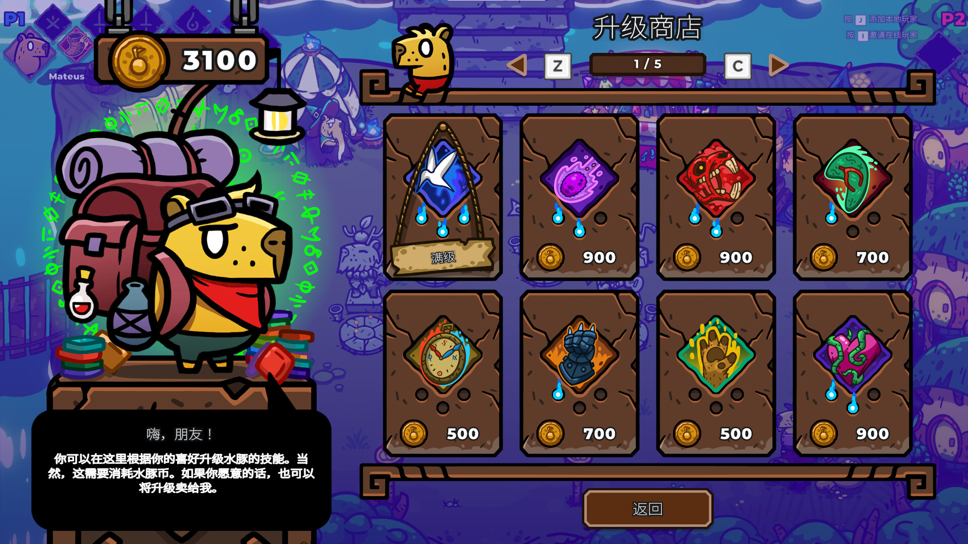 在这款为1~4人设计的、混乱的生存类轻度Rogue游戏中,和你的朋友们一起化身子弹风暴吧!收集道具来解锁武器和技能,击败一批又一批的敌人,成为最强大的水豚!
