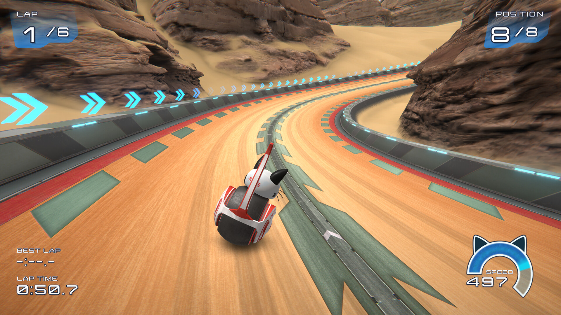 A futuristic racing game across the galaxy. Huge cats rolling on massive wheels. Drifts, weapons and crazy speed tests your driving skills!