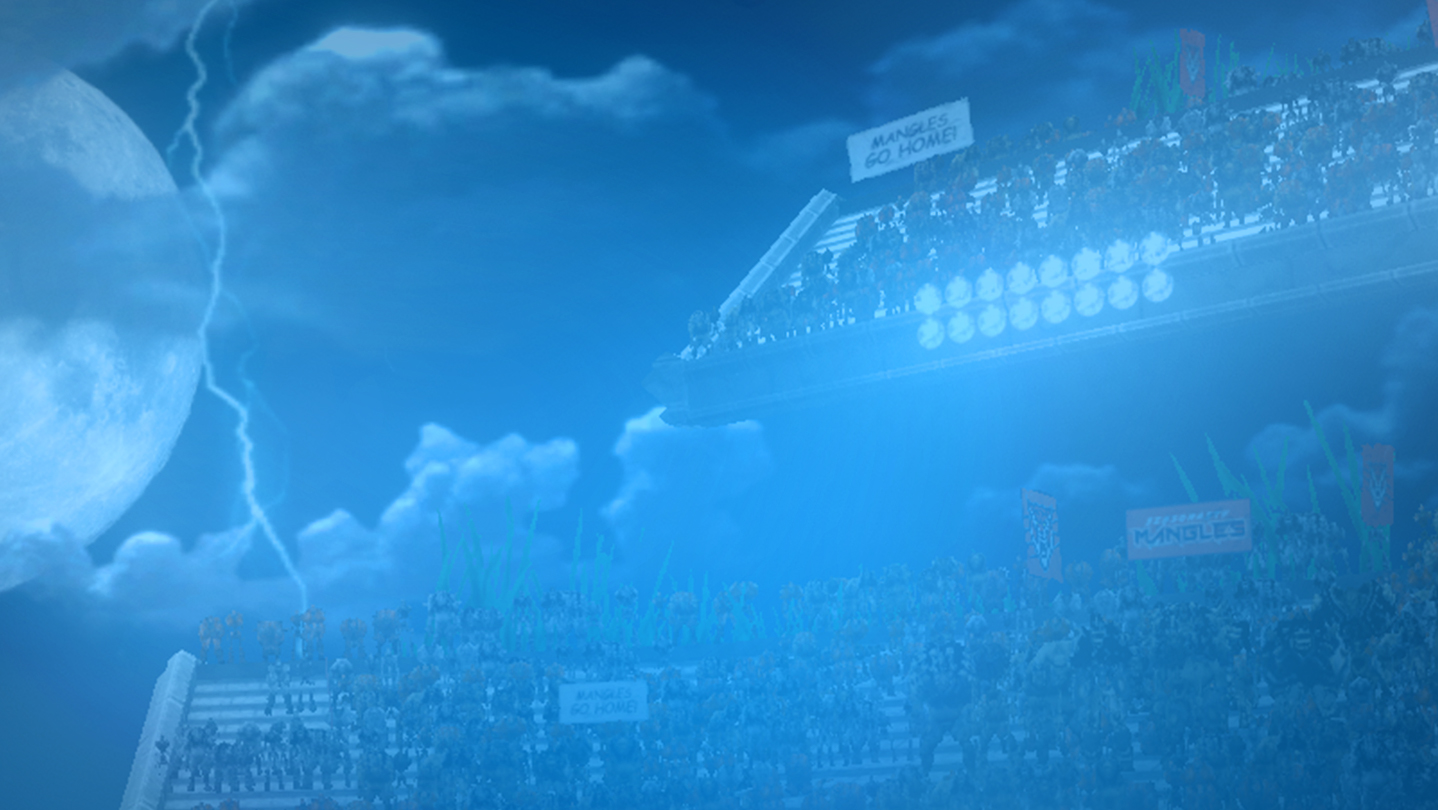 Play against or as the Mangles in Concrete Jungle Stadium which is filled with more dangerous hazards than Sinsonasty’s worst neighborhoods. Moving spikes, firepits, and mutant traps litter this urban jungle field.