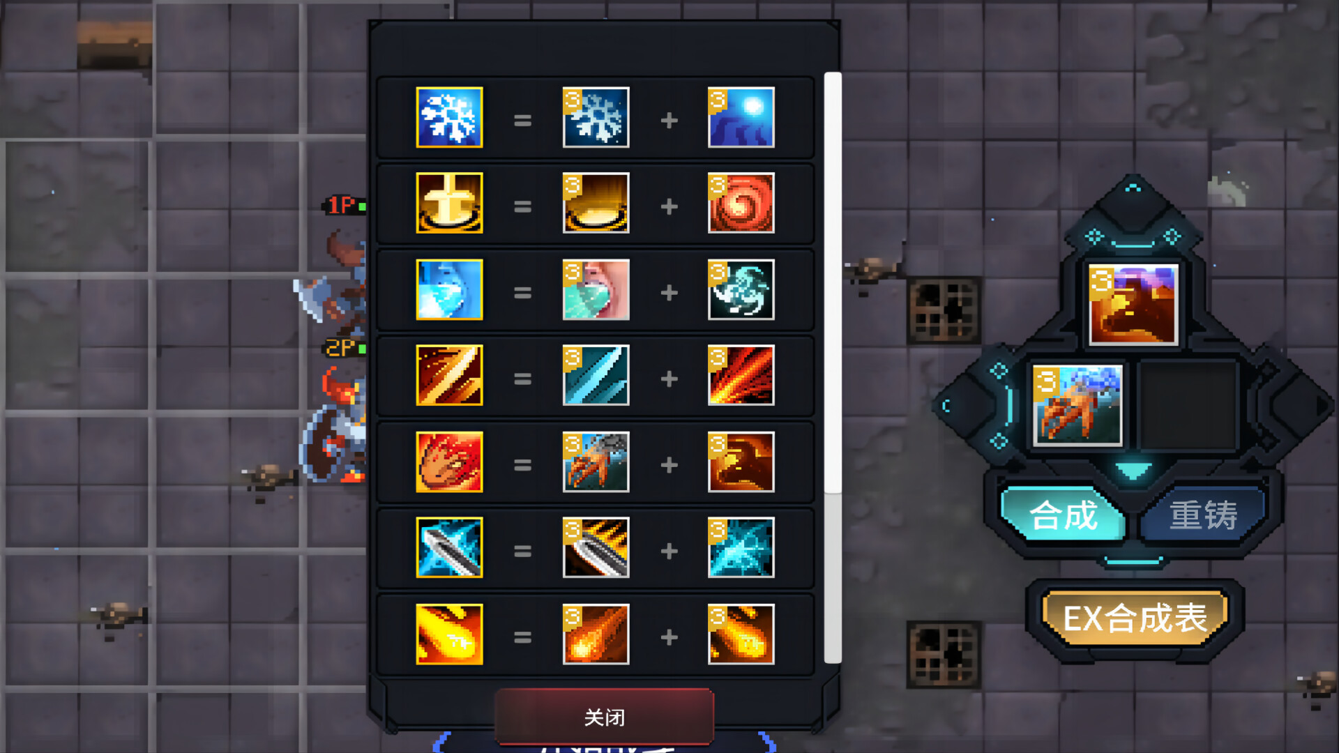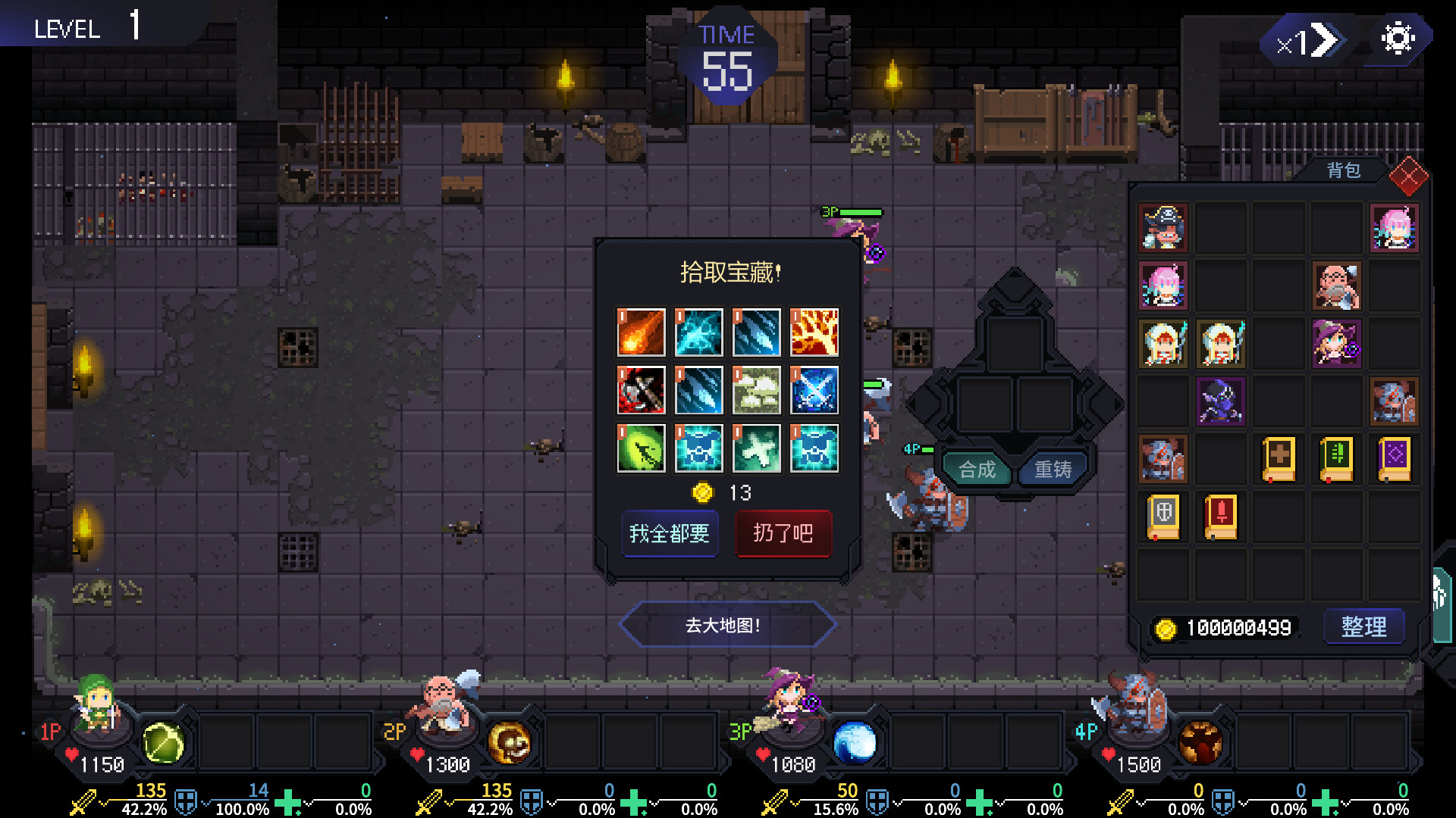 每一关战斗结束后会有丰富的资源掉落,通过合成或者重铸来分配好资源