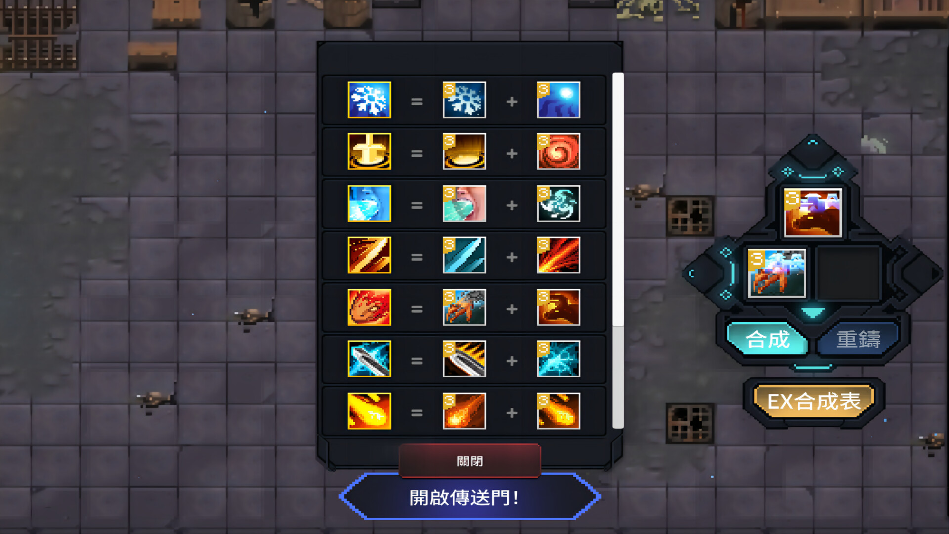 每一關戰鬥結束後會有豐富的資源掉落,通過合成或者重鑄來分配好資源