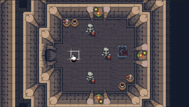 Creating interactions is as simple as drag and drop! Place items in chests or make an enemy ride a minecart.