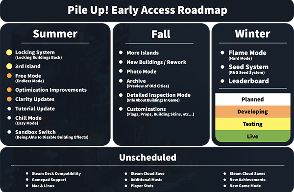 Pricing: We want Pile Up! to be affordable to anyone. We want to thank our early access players in a way too. So, we will release the game with a discount for the first week and the game’s overall early access price will be cheaper than the full release. So be quick! We will post another announcement before the release informing you of the exact price so keep an eye open.”
