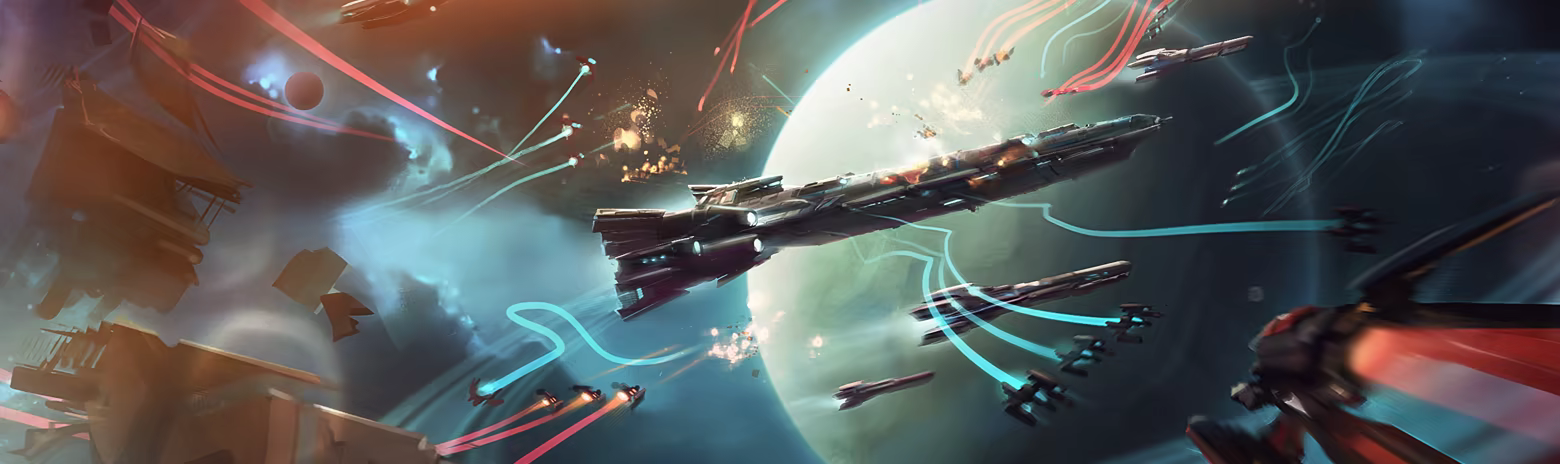 • Fast, frantic space combat where you dogfight pilots, battle massive fleets, and defend vast structures.
