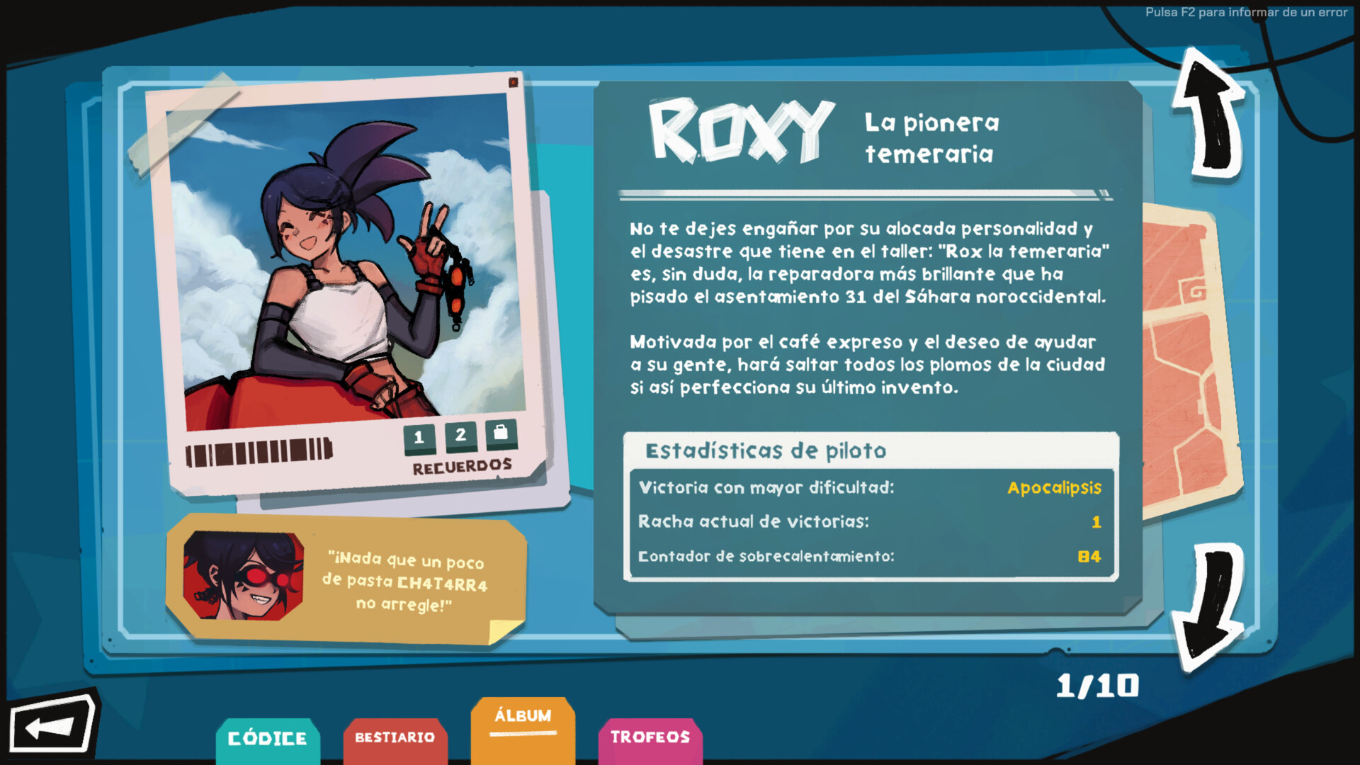 Después de cada partida, desbloquearás cartas y pilotos nuevos y enemigos y jefes más letales que te complicarán las próximas partidas. Hay una infinidad de combinaciones para descubrir cada vez que juegas.