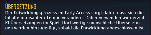 Hinweis: Spiele im Early Access sind noch nicht fertiggestellt und können in Zukunft Änderungen erhalten. Wenn Ihnen das Spiel im aktuellen Zustand nicht gefällt, warten Sie eine Weile, um zu sehen, wie sich das Spiel weiterentwickelt. Mehr erfahren