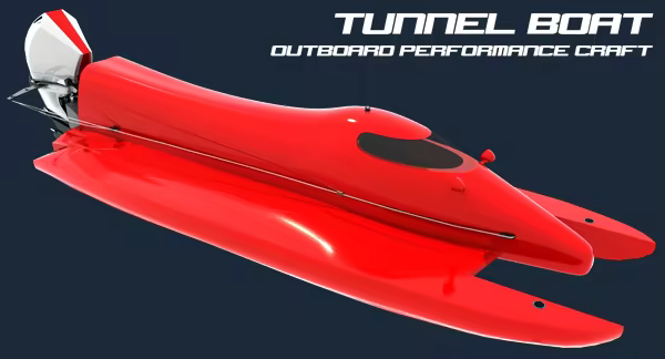 An Outboard Performance Craft is one of the fastest and most agile vehicles on the planet. Weighing under 450kg, including the driver, it can execute a full 180° turn nearly instantaneously, subjecting the driver to 4g's in the tightest corners. Approximately 6½ meters in length, they are powered by a single V6 two-stroke outboard engine and equipped with a three or four-blade supercavitating propeller. With over 400hp and capable of revving beyond 9,000rpm, these boats can accelerate from 0 to 100km/h in under two seconds and achieve top speeds of 250km/h. Hydraulic trim allows the driver to tilt the motor in and out of the water for optimal maneuverability.