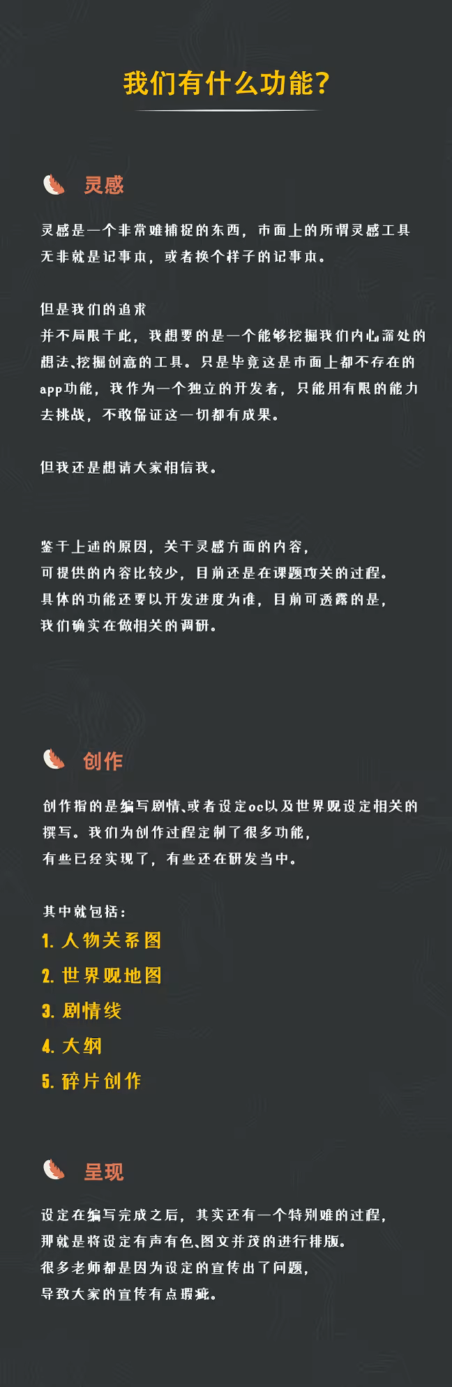 橘小柚是一个为OC创作而设计的APP,独创的模组OC设计理念让OC的创作可以享受到搭积木一般的感受。用户可以通过橘小柚轻松实现OC内容的管理、灵感的收集、OC的创作与分享。