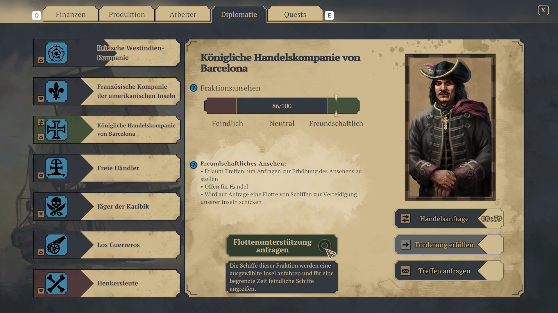 Betreibe Diplomatie - Pflege dynamische Beziehungen mit Piratenmannschaften und Handelskompanien. Miss dich mit Rivalen und schmiede Allianzen, während du ein ausgefeiltes diplomatisches Netz spinnst.