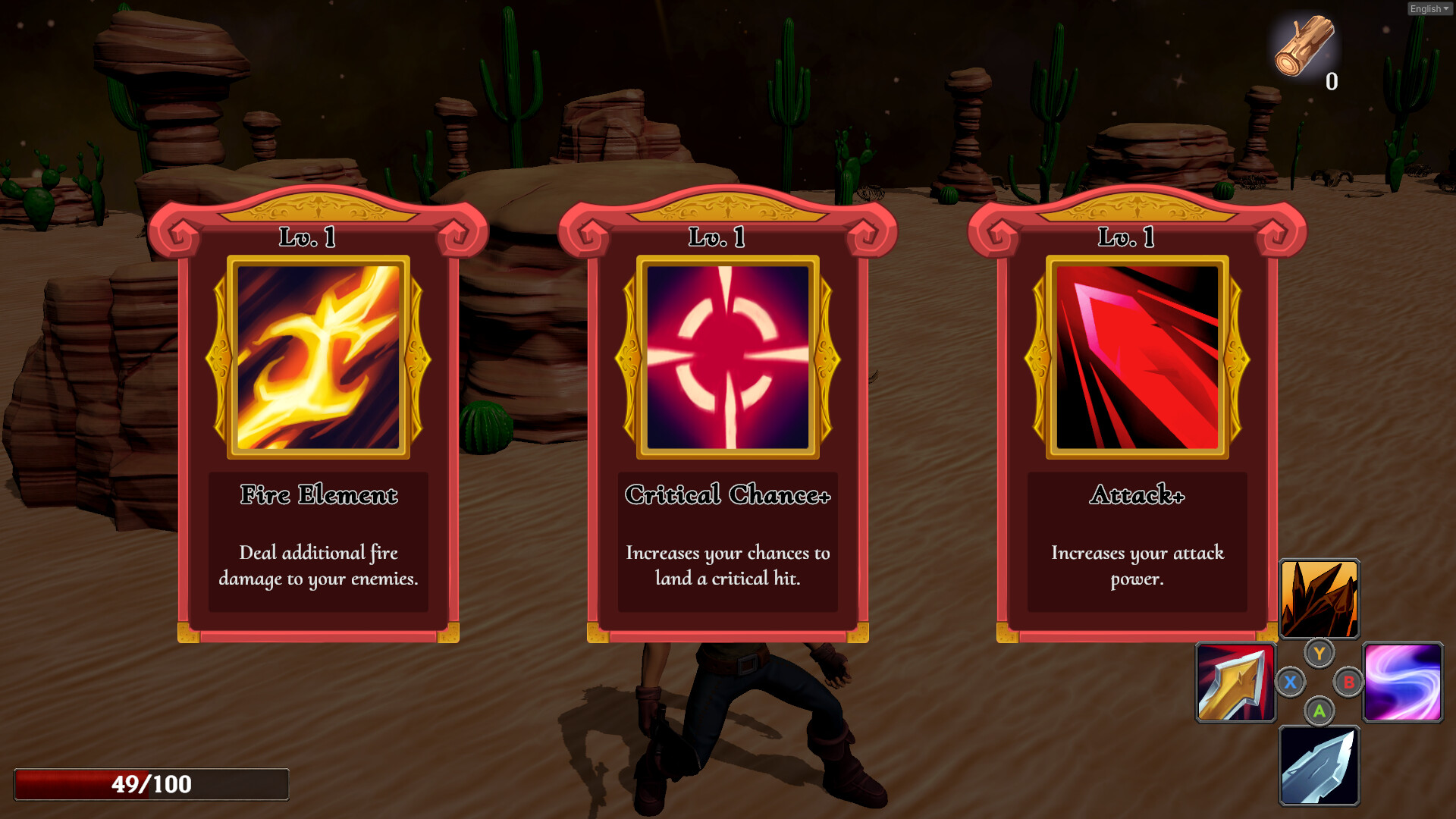 To get stronger on your adventures, you can make use of the biomes' energies after defeating all the monsters on a field. There are offensive, defensive and special energies, and when you collect enough of one type, its level increases and you can choose from three improvements associated with that energy. Some of the improvements are passive and increase, for example, your maximum health or your material yield, while others change the attacks or movements you can carry out.