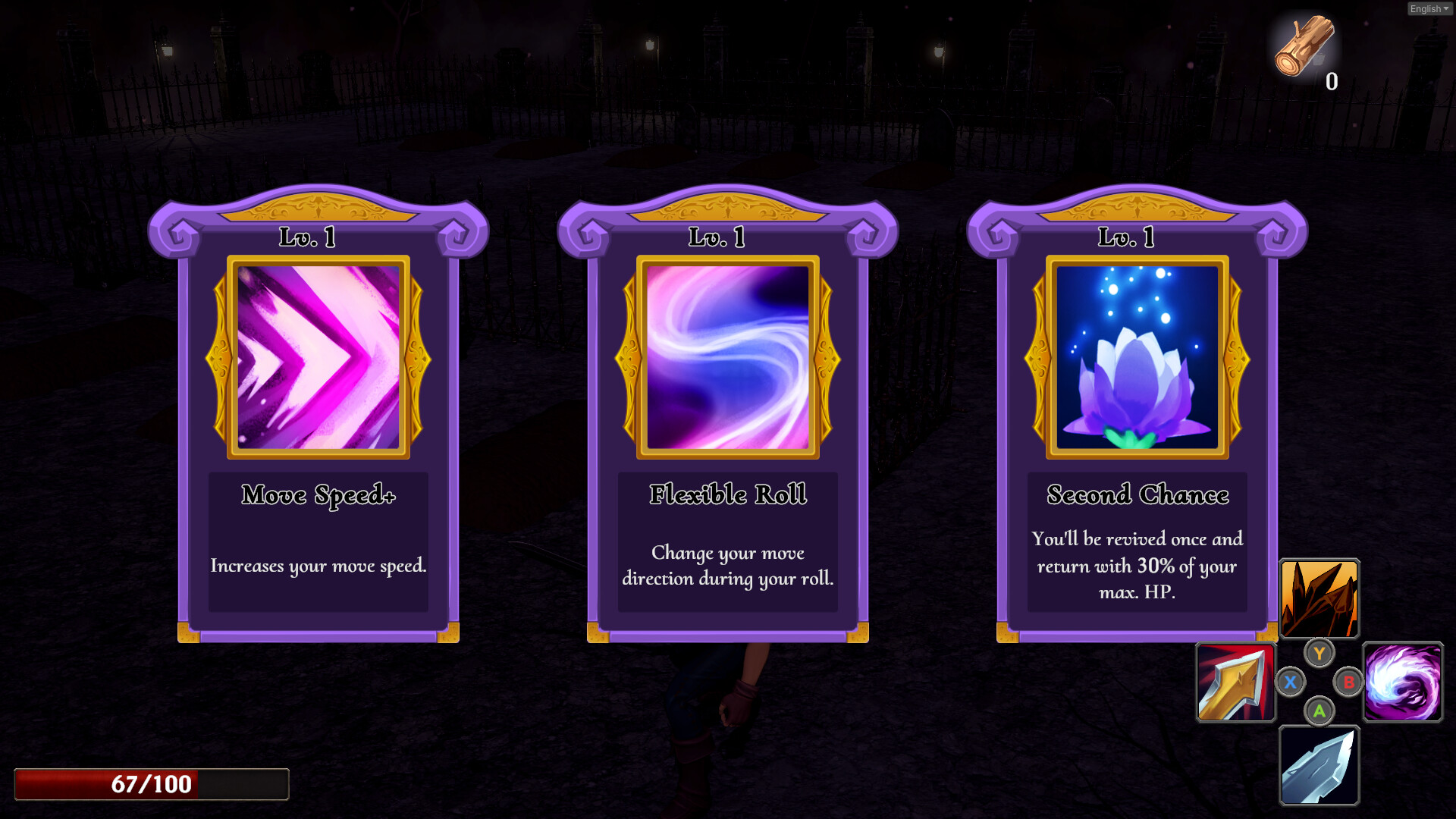 To get stronger on your adventures, you can make use of the biomes' energies after defeating all the monsters on a field. There are offensive, defensive and special energies, and when you collect enough of one type, its level increases and you can choose from three improvements associated with that energy. Some of the improvements are passive and increase, for example, your maximum health or your material yield, while others change the attacks or movements you can carry out.