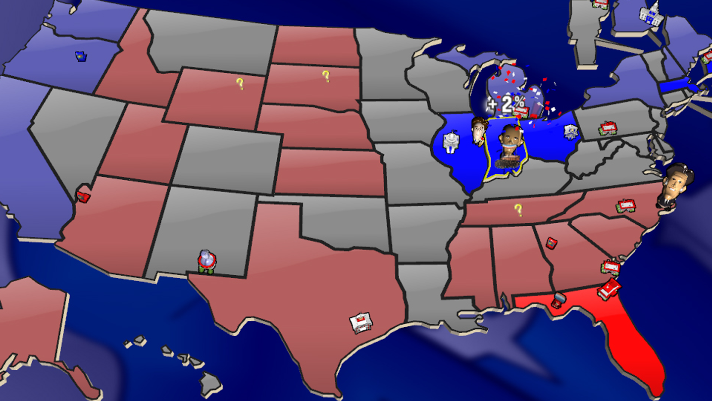 Do you have what it takes to be president?Play as more than 20 candidates including Barack Obama, Mitt Romney, Rick Santorum, Ron Paul, Newt Gingrich or create your own candidate from scratch.Players take to the campaign trail against a computer controlled opponent or a human challenger over the Internet.