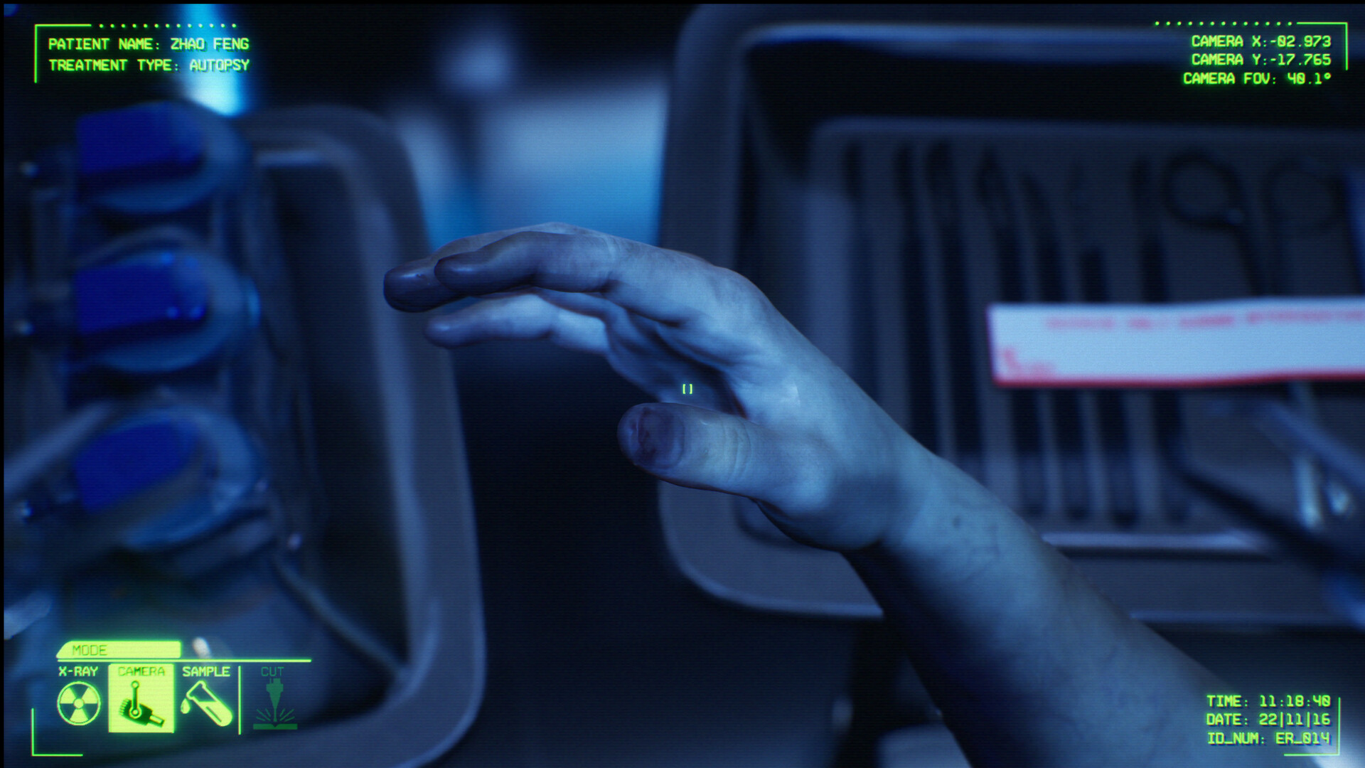 In this prototype, you control the S.P.I.D.E.R. (Surgical, Procedure, Intervention, Diagnostic, Emergency, Response) robot aboard the TRH Rusanov. You’ll perform two distinct operations: an autopsy on a cadaver to gather evidence and a surgical procedure on a pineapple.