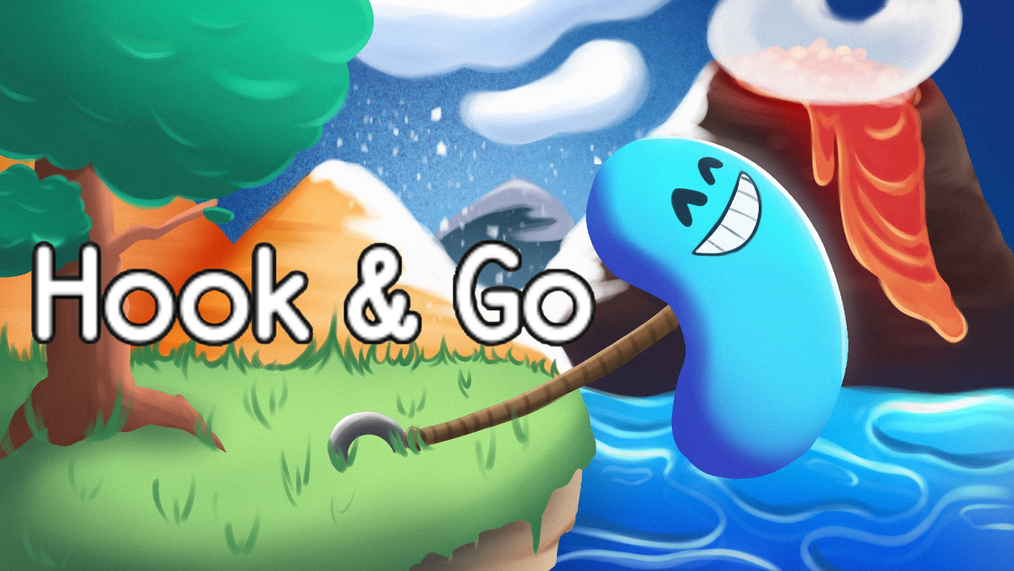 Hook & Go is a 2D platformer, you move on the levels with a hook and you grap somthing, and you are projected in this direction. Like Spider-Man!!!