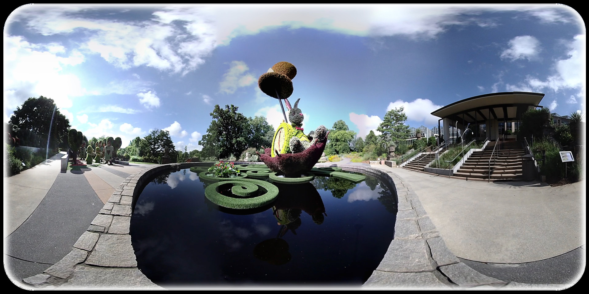 Step back in time to imagine all of the adventures and explorations people used to have while you find yourself seated in a long since retired train car. Next take a moment to reflect next to a 20+ foot recreation of the rabbit from Alice. Watch as this breathtaking botanical sculpture reflects in the pond. To end this immersion you will be taken to a Ferris Wheel ride at night time. Enjoy the slow ride up this Ferris wheel that provides a 360° view of the city and decorative lights encompassing the park over 150 feet below you. Let the adventure begin!