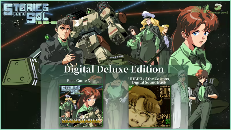 Includes 3 items: Stories from Sol: The Gun-Dog, HIBIKI of the Cosmos - SFS: The Gun-Dog Digital Soundtrack, KISEKI of the Gun-Dog – Digital Artbook