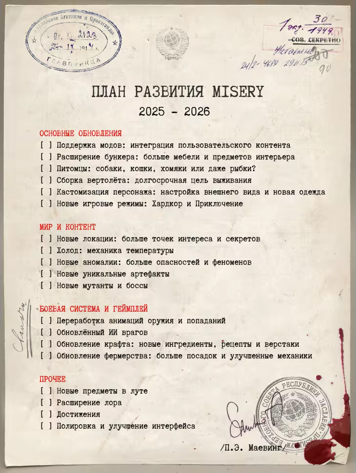 Жизнь в MISERY непростая. Но нет ничего лучше, чем пройти через всё это вместе. Лутать заброшки с напарником, прикрывать друг другу спины, сидеть у огня, пить всё, что осталось, и выдыхать дым в холодный дождь — в такие моменты можно снова почувствовать, что ты жив!