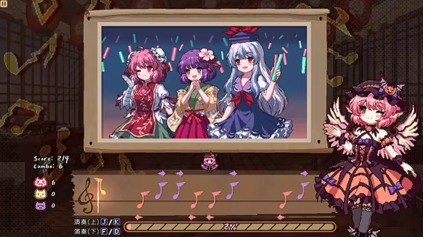 ——音楽を愛するとある神様から、幻想郷全域での音楽活動を広めようというオファーが届いた。あなたも音楽が好きなら、この招待に返信して、試験中のリズムアーケードを無料で手に入れることができる……!