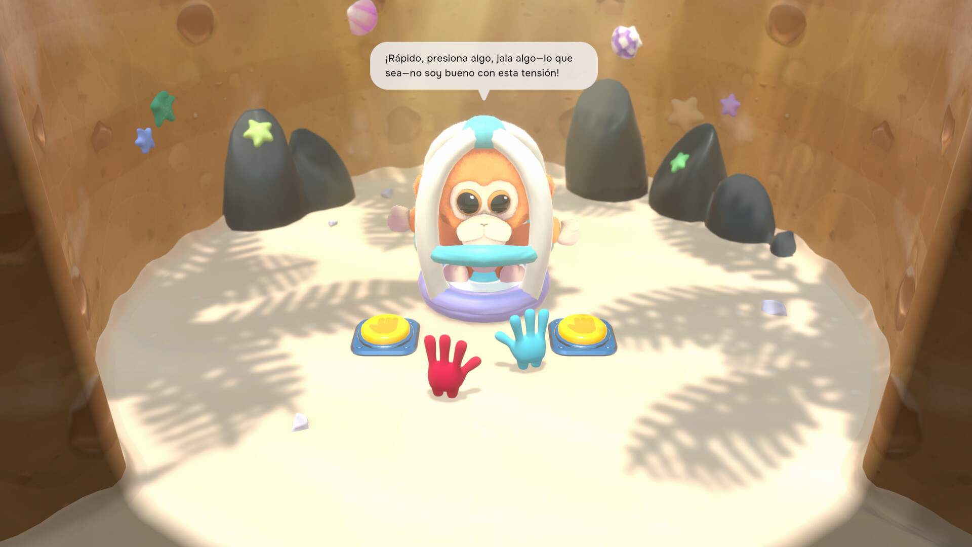 En esta aventura cooperativa para 2 jugadores, divertida y entrañable, ¡todos los peluches de la guardería han desaparecido! Jugad como las manos de cada niño, buscando a sus amigos peludos en sus propios mundos de fantasía. ¿Podréis descubrir quién o qué causó este extraño suceso? ¡Saltad, Recortad, Agarrad, Golpead y chocad los Cinco a través de tres mundos llenos de puzles, secretos y desafíos!