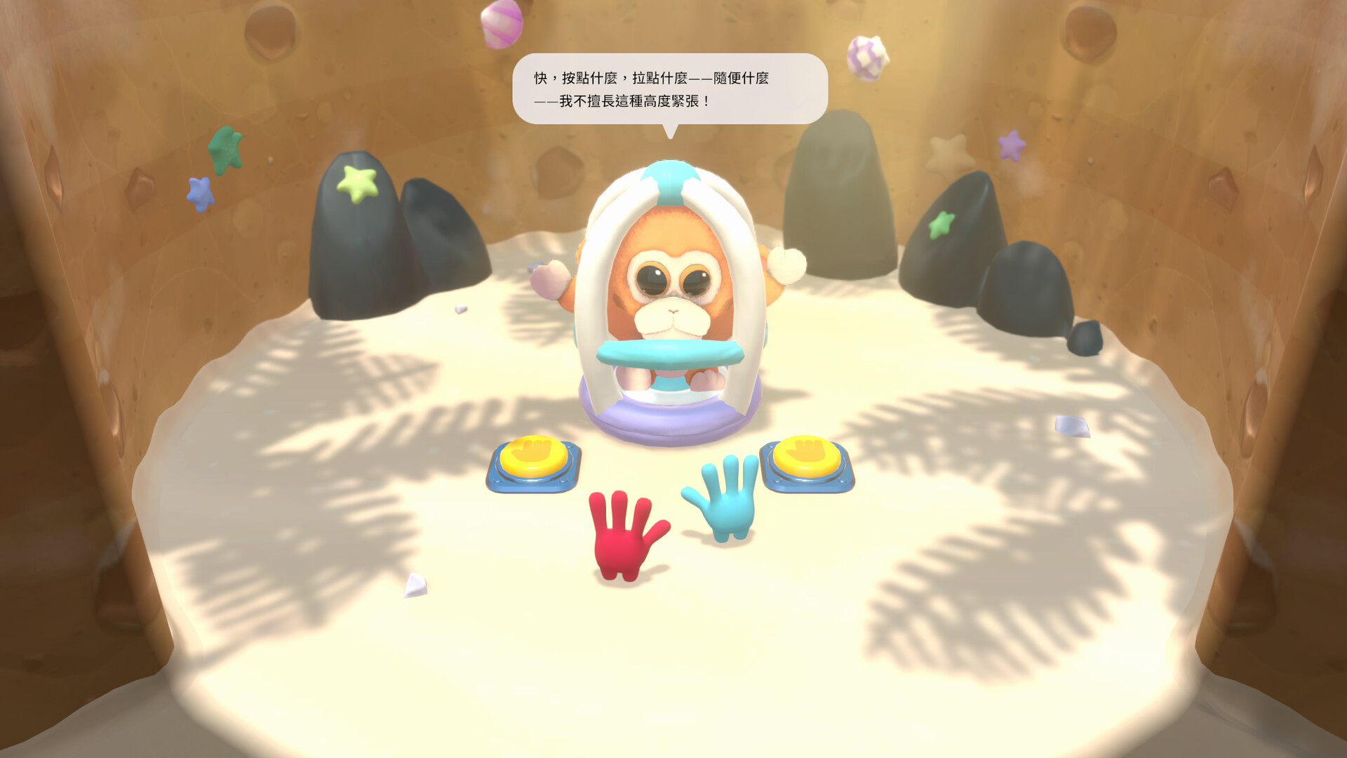 你的身體讓你能在這些奇幻世界中互動。用「石頭」可以擊打障礙,「紙」可以抓取物品和擊掌!當然,「剪刀」可以幫你剪開前路,三者缺一不可!