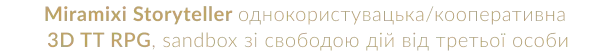 Miramixi Storyteller розроблено, щоб надати новий ігровий досвід і зручну функціональність для організації ігрового процесу в рольових іграх зі повною свободою дій. Поділіться своїми власними світами, де інші гравці зможуть зануритися в захопливі пригоди з чудовою історією.