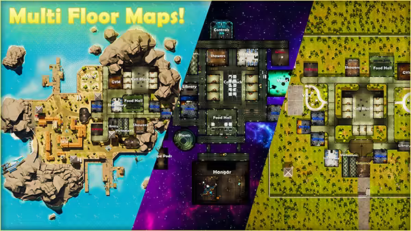 • 3 Maps - Bricksfield, Lost Island, Space with Underground Tunnels and Vents!