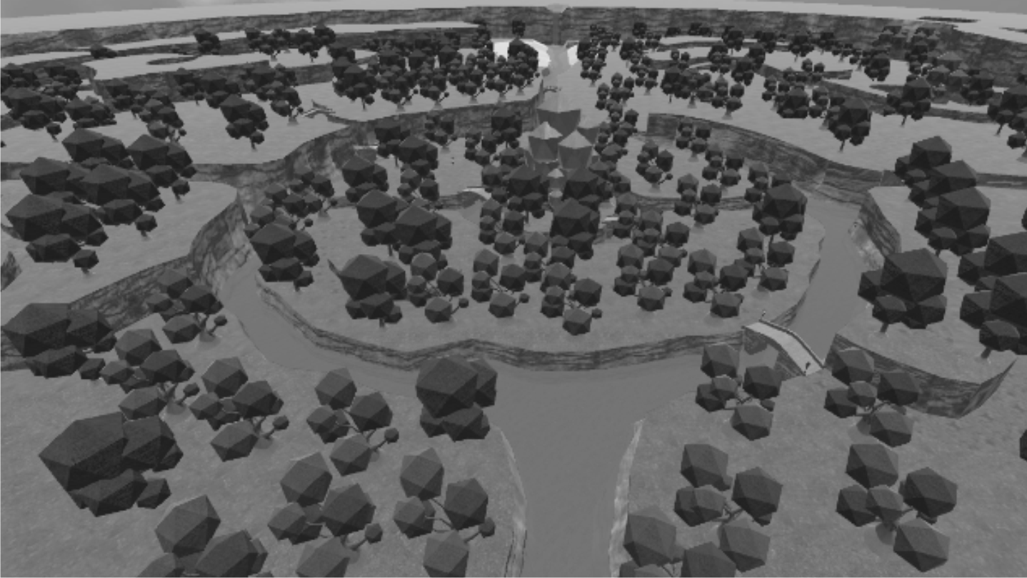 This is a magical Squirrel Forest! The squirrels live peacefully there, protected by the mountains and the large trees that surround it.