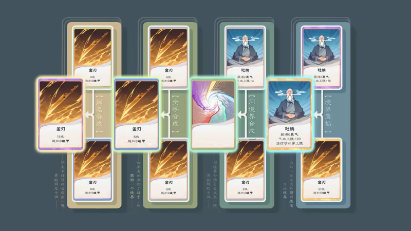 蓬莱之旅是一款仙侠风肉鸽卡组构建游戏。