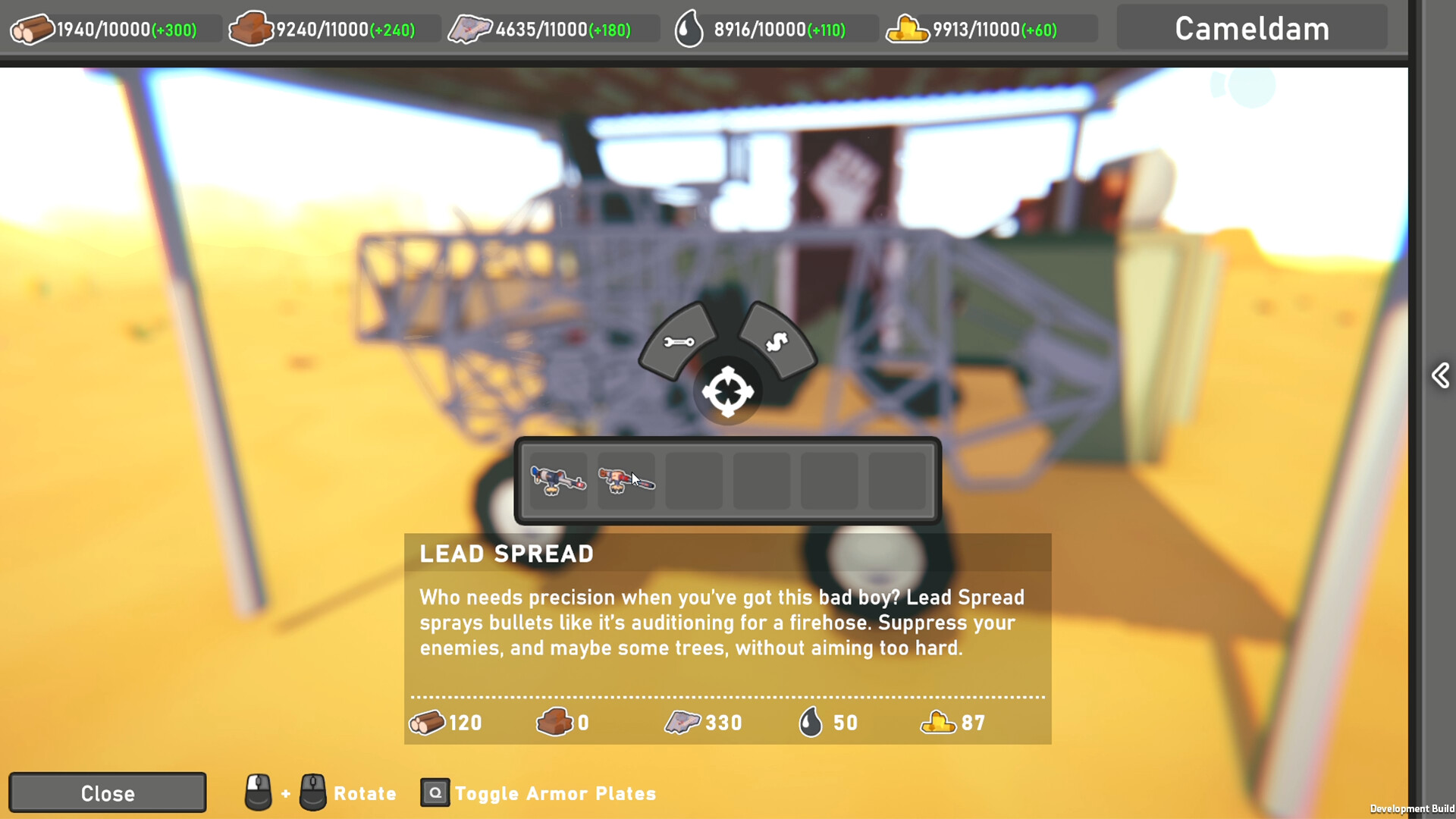 Slow-paced shooter with strategy elements set in a procedural, fully destructible, post-apocalyptic world. Craft and fight with DIY weapons, build and demolish oil camps, meet silly characters, manage and upgrade your army, in order to beat The Vultures and discover what's behind The Sandstorm.