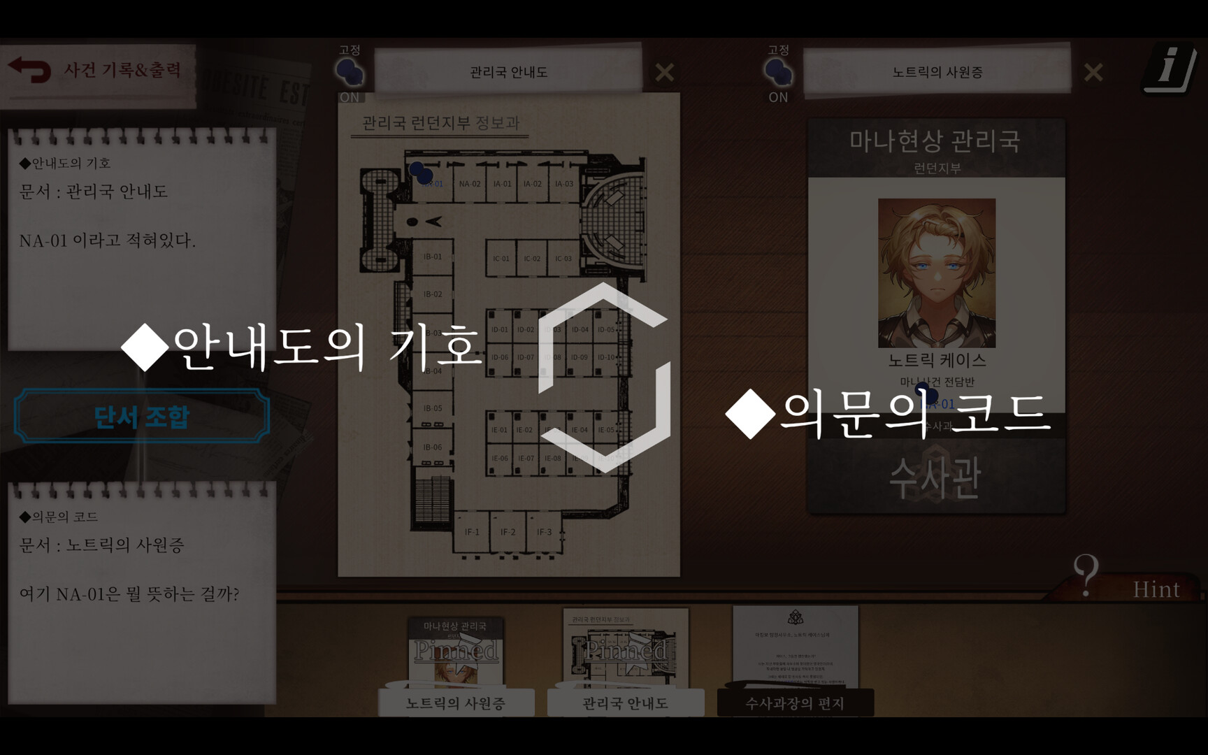 플레이어는 마나 사건 전담반의 신입 수사관, 노트릭이 되어 사건을 해결해 나갑니다.