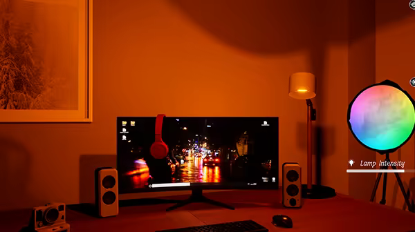 LAMP SIMULATOR is a realistic game. In the game, you can create the environment you want by changing the intensity and color of the lamp light in your room. You can use the light coming from the monitor in your steam broadcasts in the light settings you have adjusted.