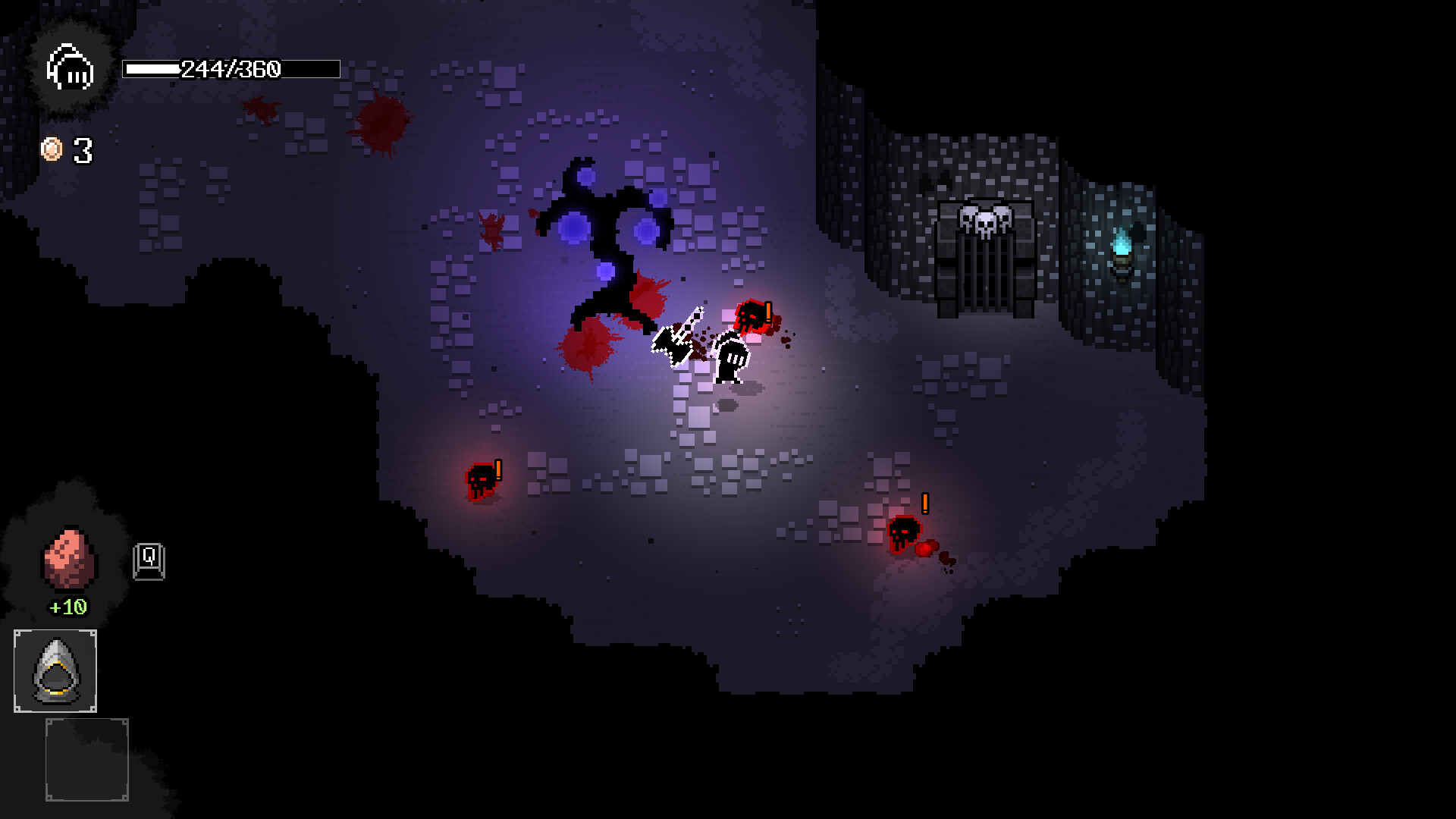 Caveshifter uses pixelart, but there’s some stylized gore. Enemies can explode into blood when they die or leave blood spatters when hit. Certain actions — like sacrificing your own health for power-ups — are shown in a bloody and/or ritualistic way. It’s all pretty exaggerated and not realistic, but worth mentioning if you’re sensitive to that kind of content.