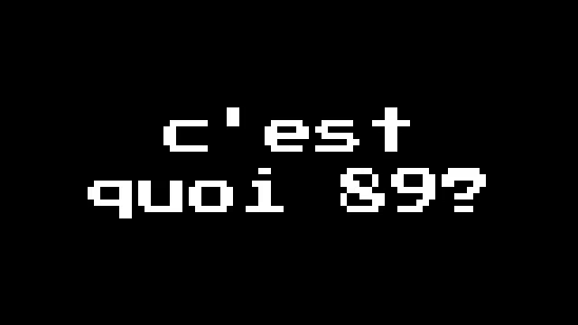 89 est un jeu de plateforme simple qui présente une petite torsion, il n'y a qu'un seul point de contrôle dans tout le jeu, situé à mi-chemin du jeu. Il présente une conception de niveau simple, des graphismes pixel art 1 bit et des commandes simples et intuitives.