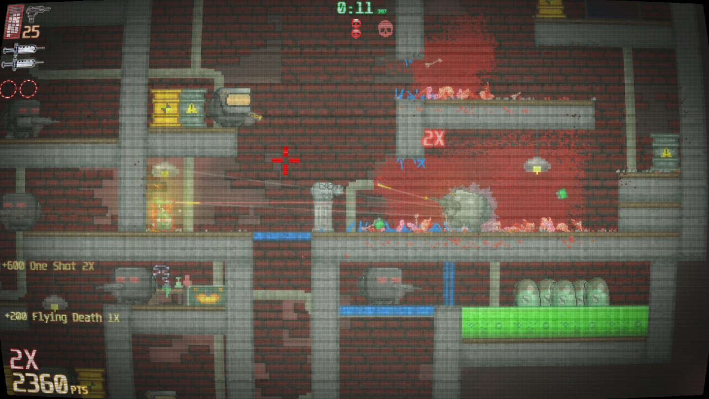 A dynamic platformer with lots of blood and chaotic shooting. Unleash your desire for violence by killing crowds of enemies, hastily injecting yourself with another dose of experimental drug.