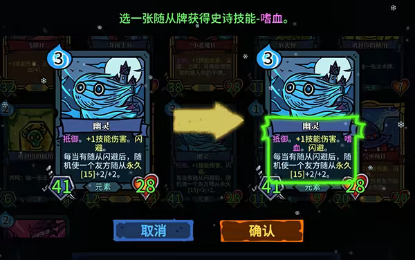 在一场场的战斗过程中,随从卡牌将能够通过各种方式获得永久的属性成长