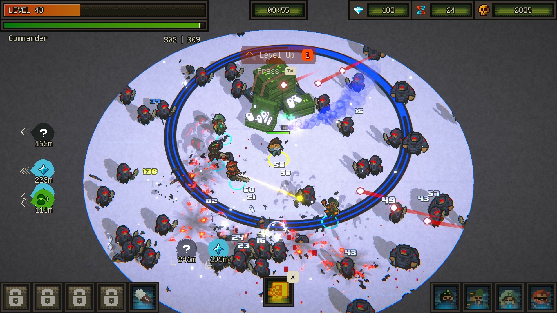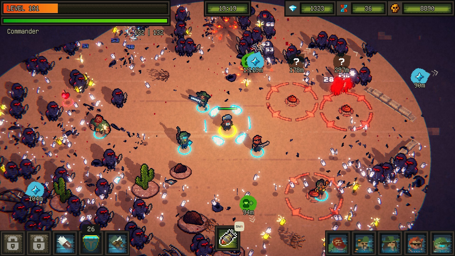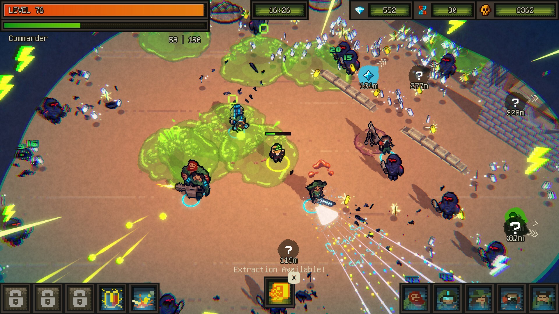 Command the bullet hell and extract with your loot–or die trying! Take control of a cloned commander and lead your merc squad against a relentless robot army. Test your skill in this roguelite, bullet-heaven extraction shooter. Survive the Onslaught. Grow your Mercenary Army. Unleash the Havoc!