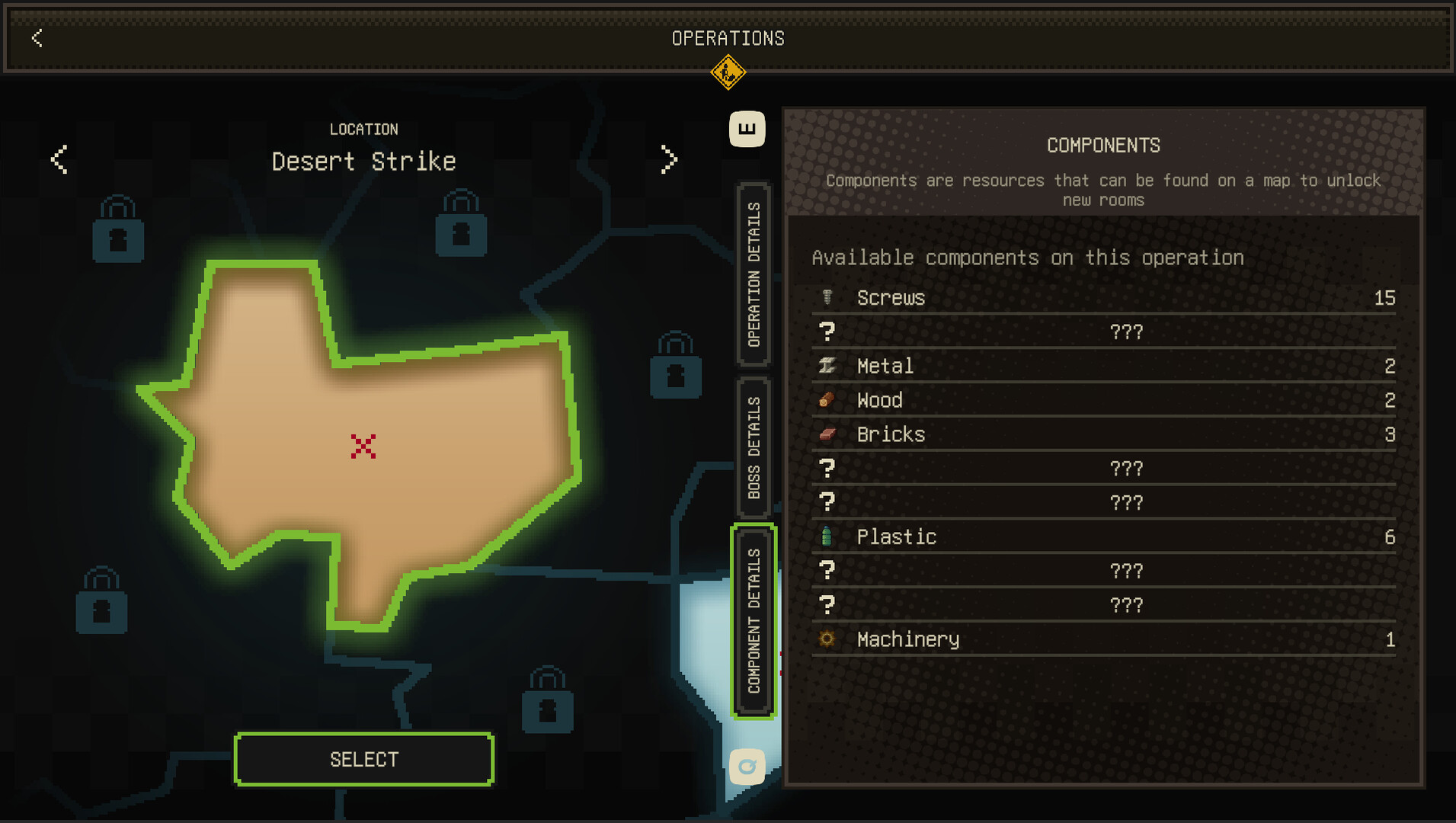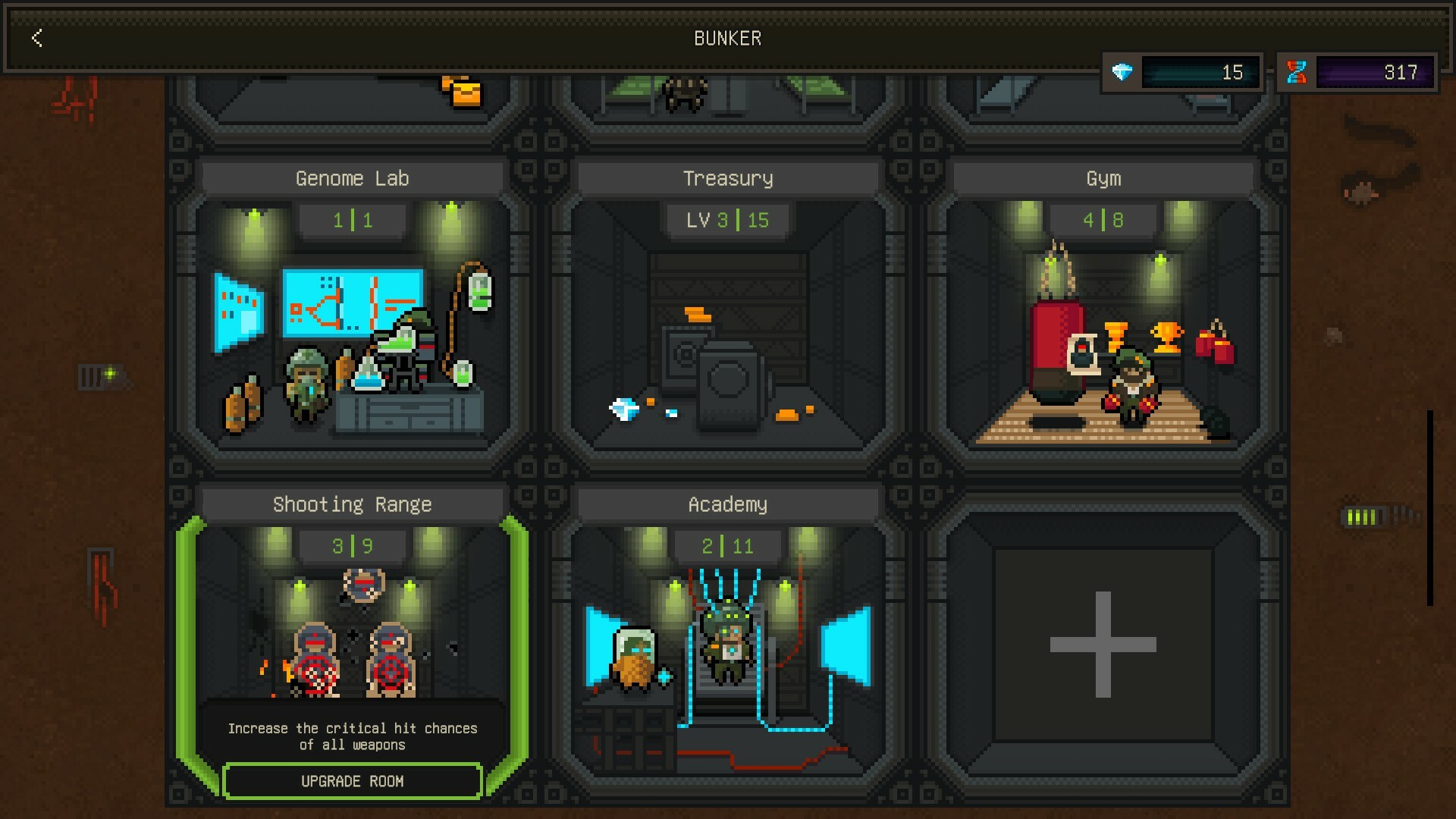 • different rooms for your Bunker HQ that you can build with materials you loot during your Operations to get permanent bonuses and unlock helpful features