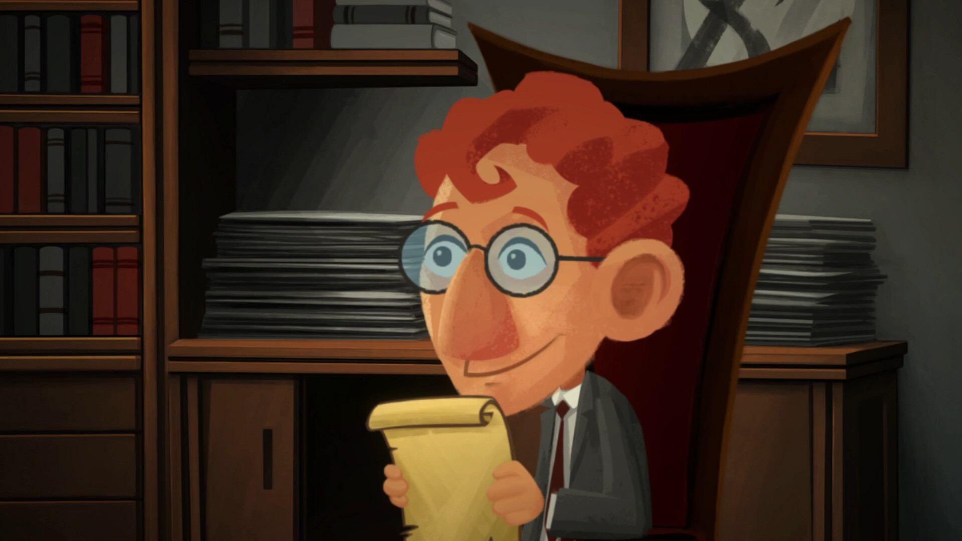 Dark humor with bright colors scenes divided in independent chapters with constant references to film and book genres, pop culture and classic point and click games.