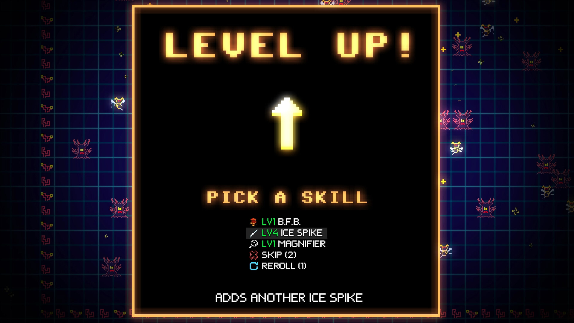 Can you survive the relentless swarm? In this retro arcade take on the Bullet Heaven/Survivors-like action roguelite, you'll slay 1000s of foes, level up, loot chests and try to make your character more powerful than ever. Spend gold to unlock perma-upgrades and additional heroes, so you can beat the odds on future runs.