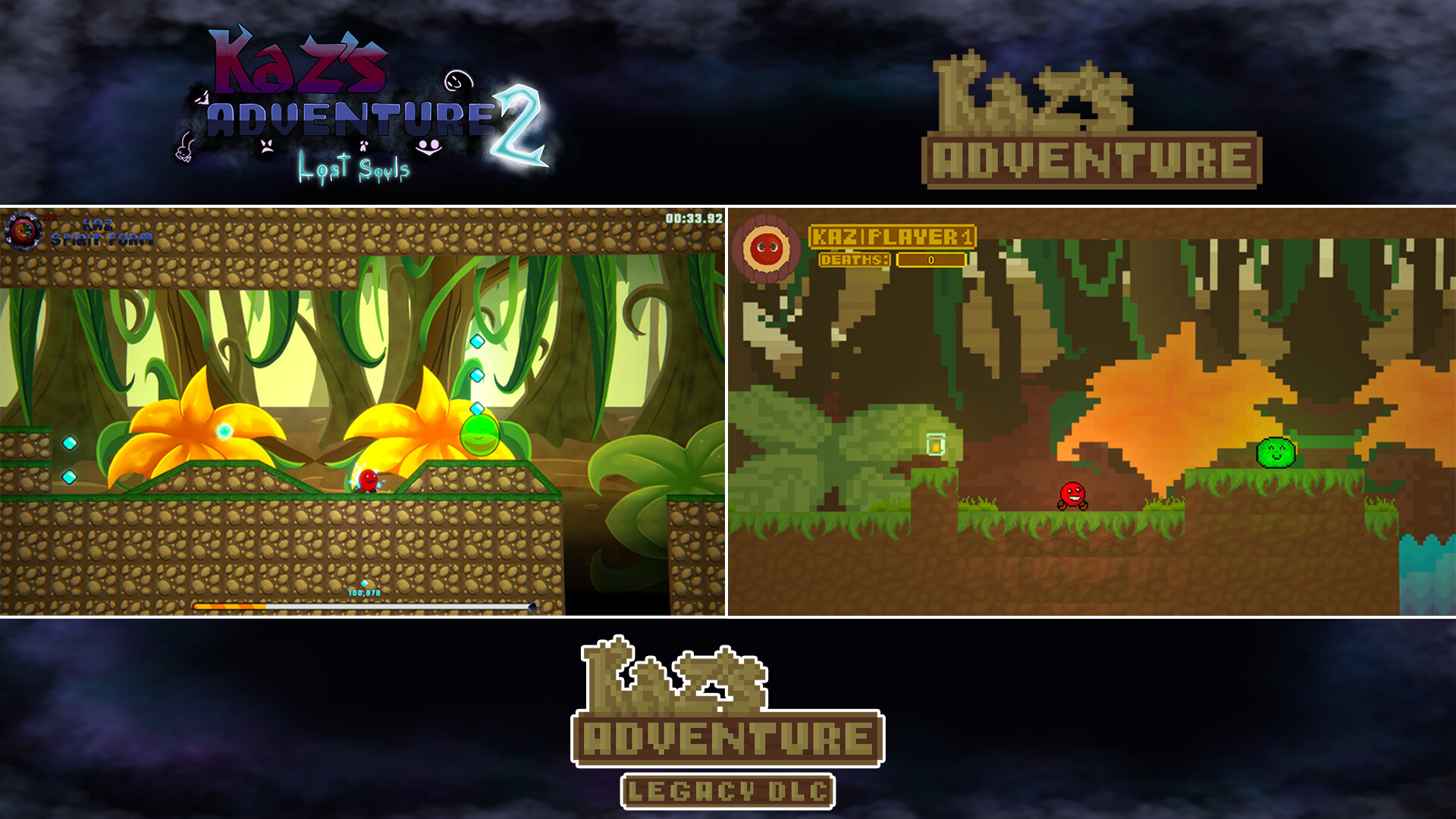 6 of the 8 levels featured within the DLC have been reimagined from Kaz's Adventure (2022.), using Kaz's Adventure 2: Lost Souls (2024.) new level design elements such as slopes, one way platforms, enemy health bars, lighting and more!
