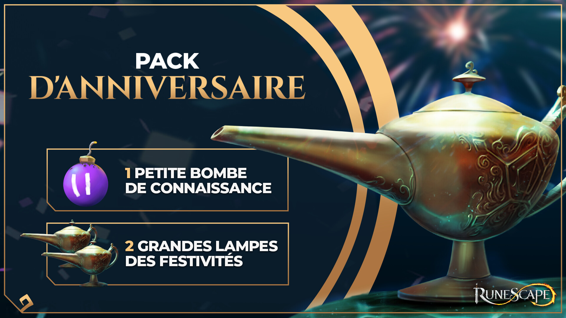 · La petite bombe de connaissance et les 2 grandes lampes des festivités sont envoyées dans la boîte d'objets Pack d'anniversaire.