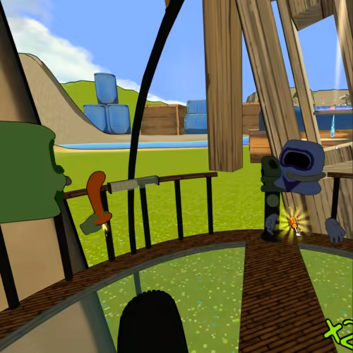 • Ship-based combat where 4 players can navigate challenges together while controlling 4 turrets and giant energy shield.